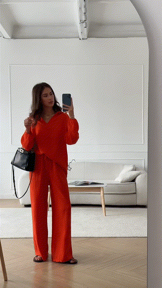 This elegant V-neck casual two-piece set is the epitome of style and comfort. Ideal for both casual and semi-formal occasions, this set is a must-have addition to your wardrobe.