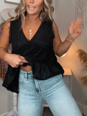 New V-neckline Sleeveless Flow Top with Lace Trim (Buy 2 Free Shipping)