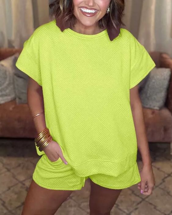 New Women's Solid Textured Drawstring Shorts Set (Buy 2 Free Shipping)