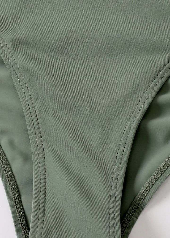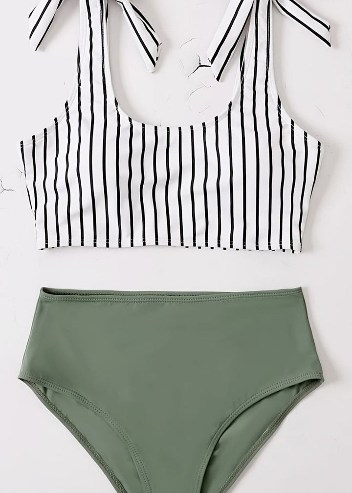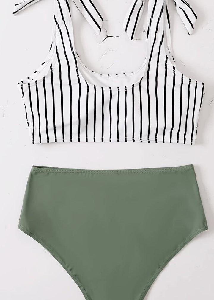 Beautiful Green Striped High Waist Beach Swimwear Set
