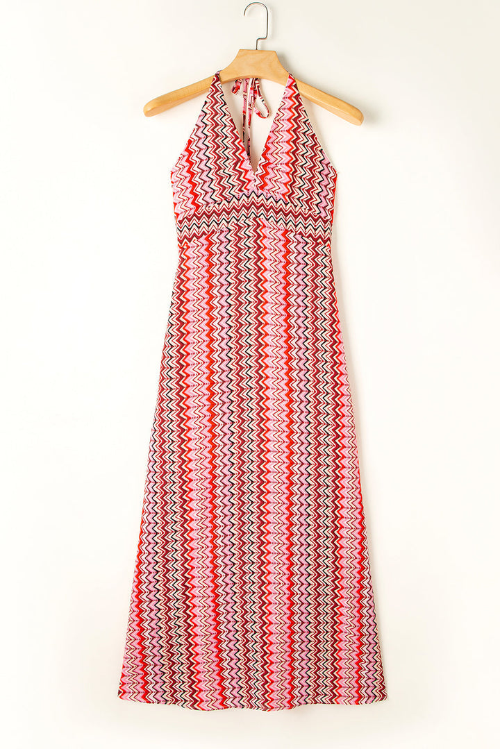 Red Halter Neck Tribal Boho Printed Backless Maxi Dress