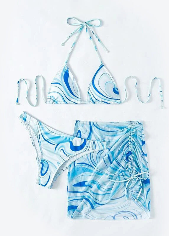Sexy Pink Cinched Halter Lace Up Swimwear Set