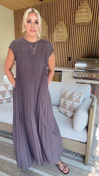 Basic short-sleeved, simple solid color, two handy pockets, trendy and elegant. Add style and comfort to your wardrobe with the Cap Sleeve Pleated Flowy Maxi Dress. Combining style and function, this dress strikes the perfect balance between casual luxury and everyday comfort!